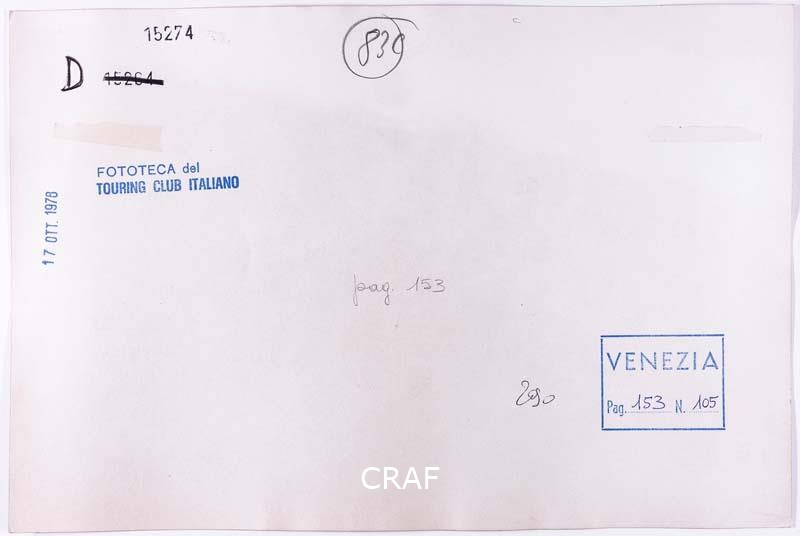 Personaggio tra la folla di Rialto, il maggiore dei mercati veneziani. Didascalia riportata sotto all'immagine pubblicata nel volume Venezia TCI del 1978 (immagine n. 105, pag. 153).