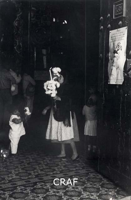 persone, donna, bambini, fiori, candela, porta, chiesa
