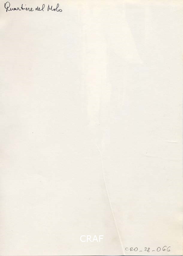 Automobile e "Ape" parcheggiati in fondo al vicolo; lenzuola sventolanti...