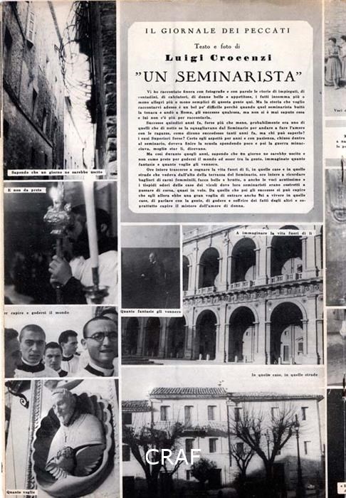<<Quanti sogni avrà nel cuore, lui?>> scrive Luigi Crocenzi come didascalia dell'immagine appartenente al fotoracconto dal titolo "Un seminarista" pubblicato sulla rivista Venerdì Il Caffè Politico e Letterario, Mensile di attualità, anno III, n. 3. Questa serie di fotografie appartiene ad un nucleo di immagini più consistente che avrebbe dovuto comporre il romanzo fotografico "Il giornale dei peccati", rimasto inedito, ma pubblicato parzialmente in più puntate sulla rivista Venerdì Il Caffè politico e letterario.