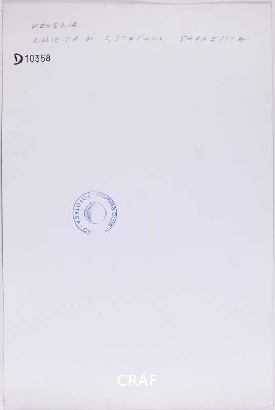 I dipinti di Jacopo Tintoretto e Gaspare Diziani nella sacrestia della chiesa di Santo Stefano. Scatto realizzato nell'ambito della campagna fotografica per il volume Venezia TCI del 1978, ma in quell’occasione non pubblicato.