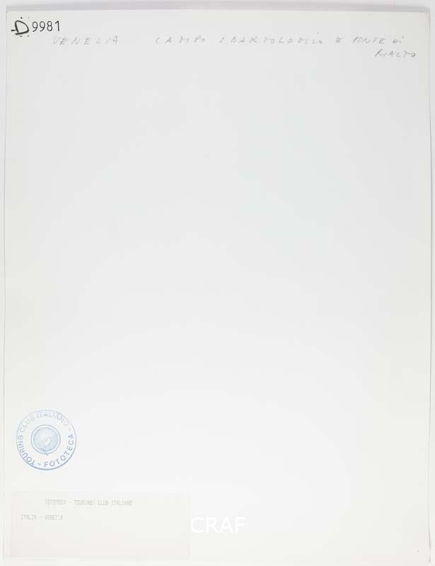 Uno scorcio di Salizada Pio X ai piedi del ponte di Rialto. Scatto realizzato in occasione della campagna fotografica per il volume Venezia TCI del 1978, ma non pubblicato.