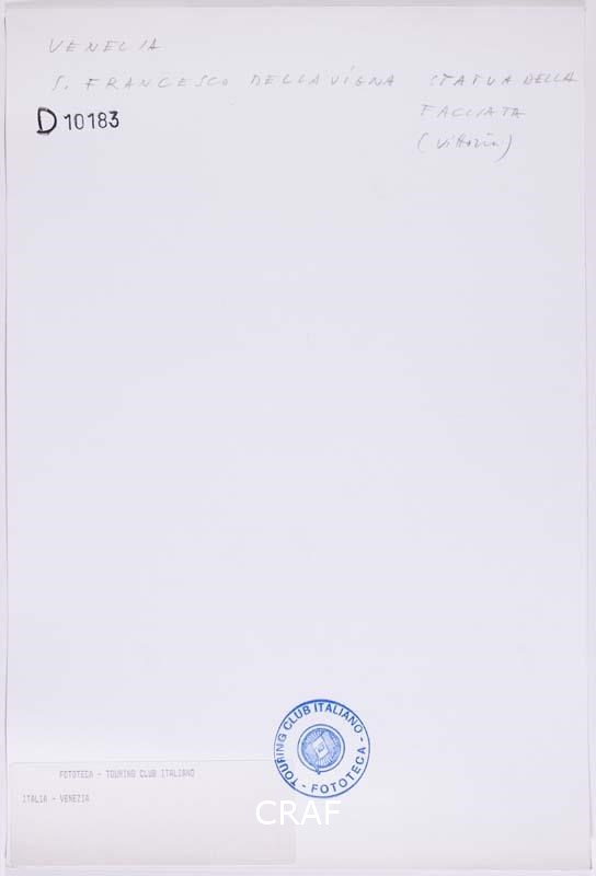 Particolare della facciata di San Francesco della Vigna con il monumentale Mosè in bronzo di Tiziano Aspetti. Scatto realizzato nell'ambito della campagna fotografica per il volume Venezia TCI del 1978, ma in quell’occasione non pubblicato.