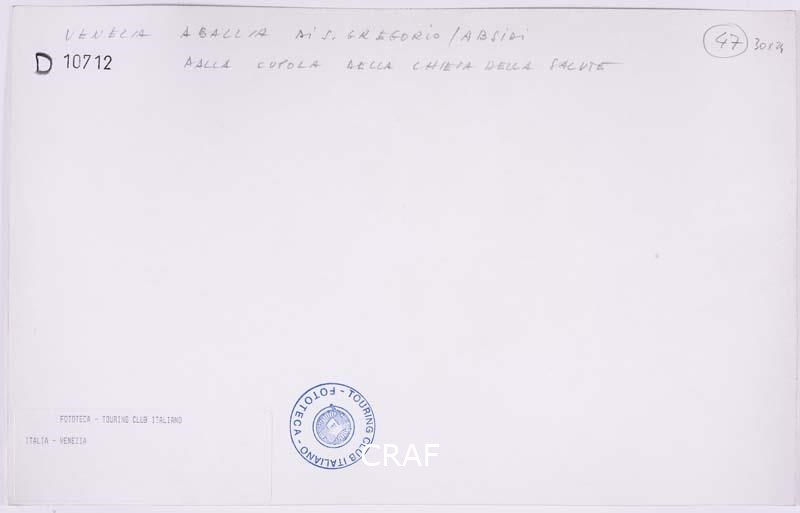 Gli absidi della chiesa di San Gregorio ripresi dalla cupola della basilica della Salute. Scatto realizzato in occasione della campagna fotografica per il volume Venezia TCI del 1978, ma non pubblicato.