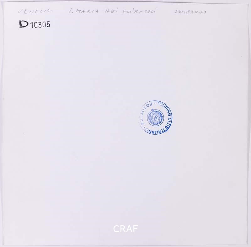Scorcio della facciata e del lato sinistro della chiesa di Santa Maria dei Miracoli. Scatto realizzato nell'ambito della campagna fotografica per il volume Venezia TCI del 1978, ma in quell’occasione non pubblicato.