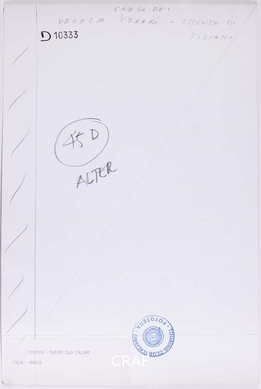 L'Assunta del Tiziano nella basilica di Santa Maria Gloriosa dei Frari. Scatto realizzato in occasione della campagna fotografica per il volume Abbazie e conventi TCI del 1973, ma in quell’occasione non pubblicato.