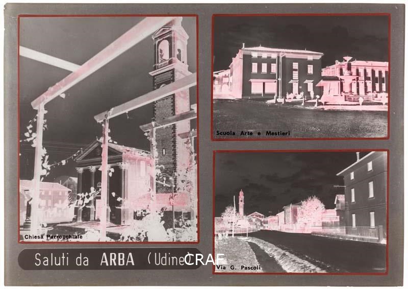Fotocomposizione che include una didascalia e tre immagini di Arba: la chiesa...
