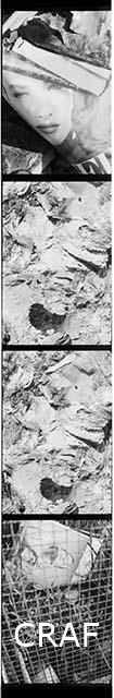 Particolare di riviste illustrate in mezzo ai rifiuti. Al centro di vede l'immagine del viso di una modella. Lo scatto fa parte della serie “Tracce”.