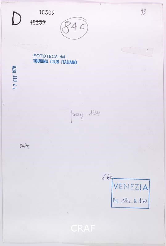 Turisti sul ponte di Rialto. Didascalia riportata sotto all'immagine pubblicata nel volume Venezia TCI del 1978 (immagine n. 140, pag. 184).