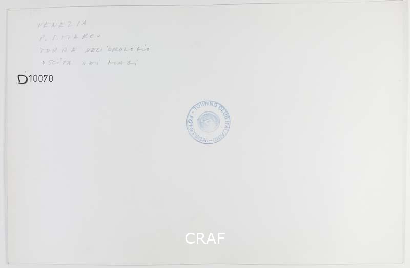 Processione dei Re Magi davanti alla statua della Vergine sulla Torre dell'Orologio di Piazza San Marco. L'evento si ripete due volte l'anno, all'Epifania e all'Ascensione. Scatto realizzato durante la campagna fotografica per il volume Venezia TCI del 1978, ma non pubblicato.