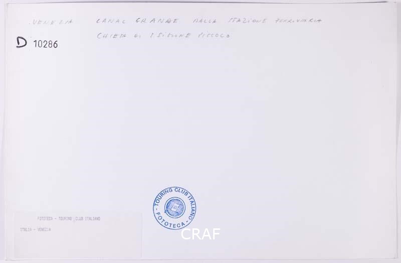 Veduta del Canal Grande dalla stazione ferroviaria di Venezia Santa Lucia, con al centro la chiesa di San Simeon Piccolo. Scatto realizzato nell'ambito della campagna fotografica per il volume Venezia TCI del 1978, ma in quell’occasione non pubblicato.