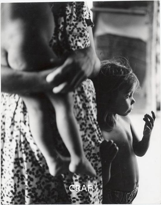 Venezuela. Primo piano di profilo di bambino accanto alla figura parzialedi donna con bambino nudo in braccio