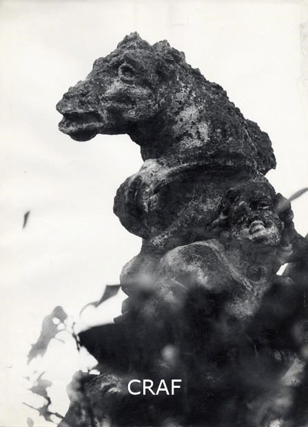 scultura, testa di cavallo, putto, vegetazione