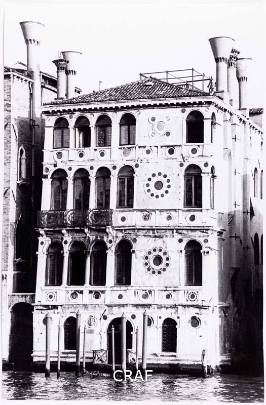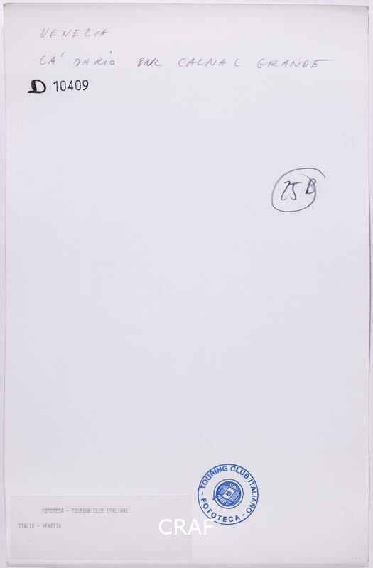 Ca' Dario, noto come il palazzo maledetto sul Canal Grande. Secondo la leggenda, tutti i suoi proprietari sarebbero destinati alla rovina economica o a una morte violenta. Scatto probabilmente realizzato durante la campagna fotografica per il volume Il palazzo italiano TCI del 1975, ma in quell'occasione non pubblicato.