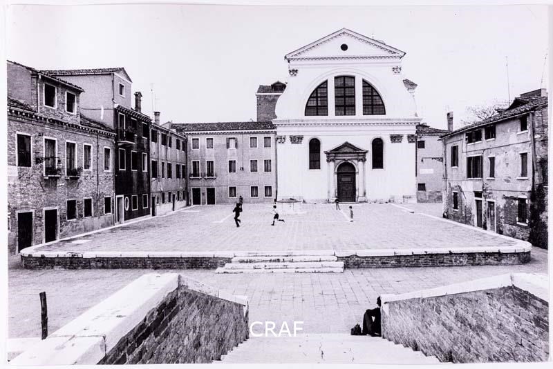 Campo S. Trovaso con la sopraelevazione dell'antica cisterna. Didascalia riportata sotto all'immagine pubblicata nel volume Venezia TCI del 1978 (immagine n. 113, pag. 160-161).