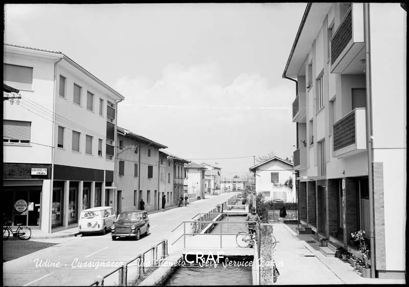 Veduta di via Veneto in direzione di Udine, a sinistra il self service Zanin che fu tra i primi supermercati di Udine.