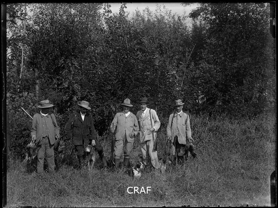 Fotografia di gruppo di cacciatori e guardiacaccia nella riserva di caccia di Fallavecchia