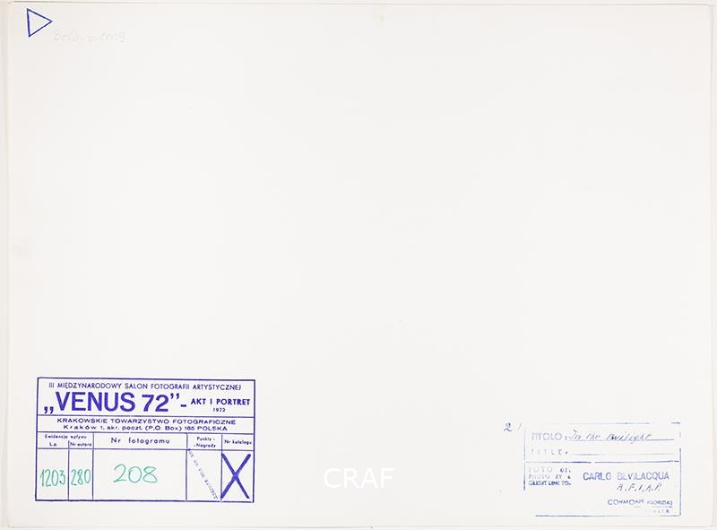 Immagine di un uomo mentre tiene il suo cavallo con una corda. In primo piano una rete da pesca. L'opera è intitolata dall'autore: "In the twilight", letteralmente "Nel crepuscolo". I curatori delle mostre e cataloghi dov'è stata pubblicata l'immagine riportano il titolo "Sul bagnasciuga" attribuendo il titolo all'autore stesso