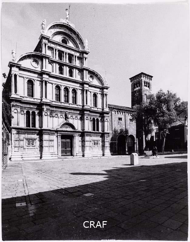 La facciata della chiesa di San Zaccaria, ripresa dal campo antistante. Scatto realizzato nell'ambito della campagna fotografica per il volume Venezia TCI del 1978, ma in quell’occasione non pubblicato.