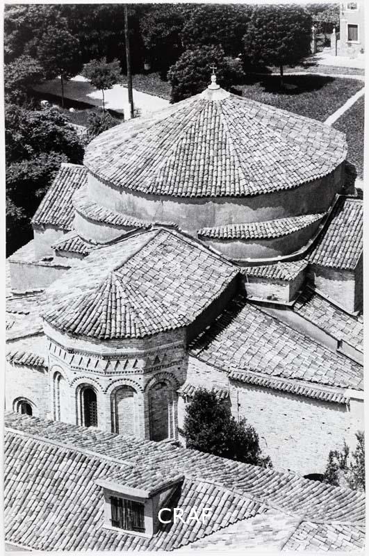 La chiesa di Santa Fosca a Torcello, ripresa dal campanile della basilica di Santa Maria Assunta. Scatto verosimilmente realizzato nell'ambito della campagna fotografica per il volume Venezia TCI del 1978, ma in quell’occasione non pubblicato.