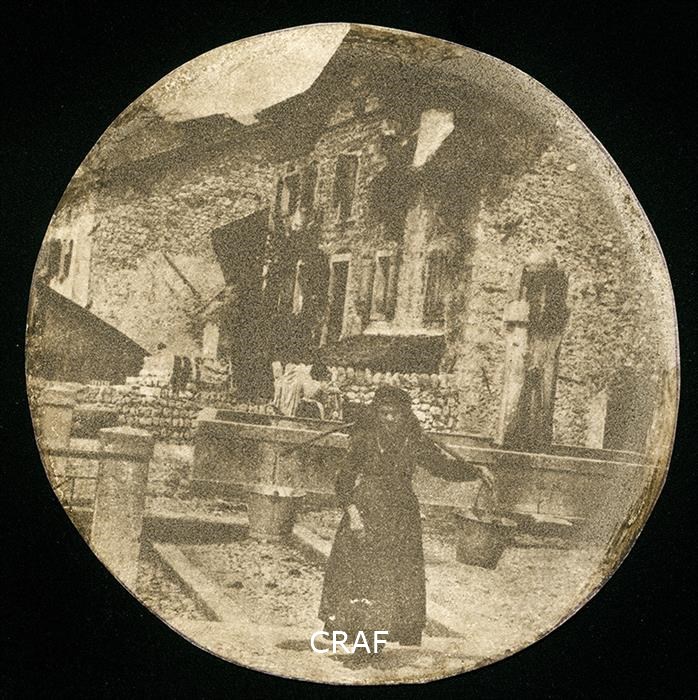 A Barcis, in piazza Vittorio Emanuele II (di fronte all'allora municipio) un signora anziana trasporta due secchi d'acqua con un bilanciere da spalla attinta dalla fontana alle sue spalle.