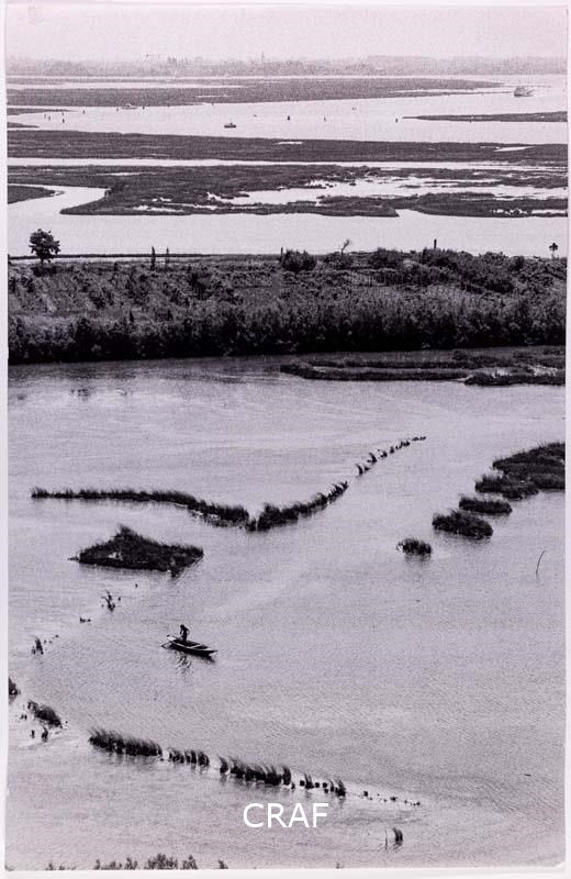 La laguna dal campanile di Torcello. Didascalia riportata sotto all'immagine pubblicata nel volume Venezia TCI del 1978 (immagine n. 46, pag. 80).