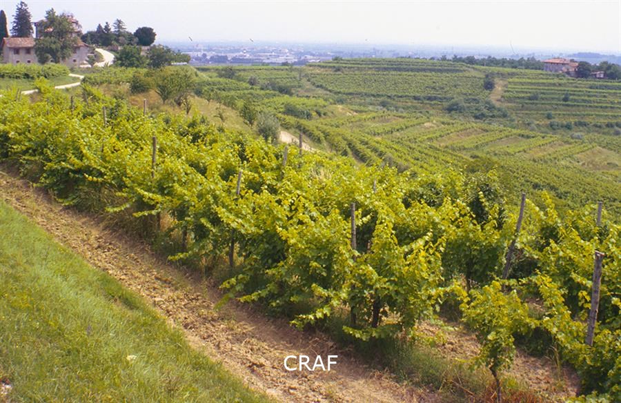 Veduta delle vigne che digradano lungo la collina.