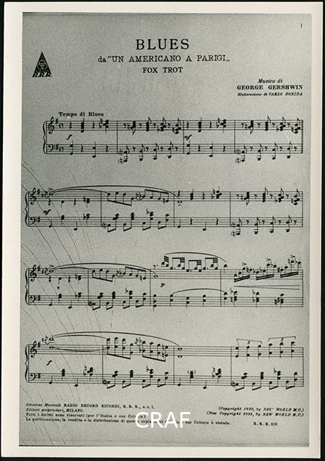 Riproduzione dello spartito Blues, da "Un americano a Parigi", fronte.