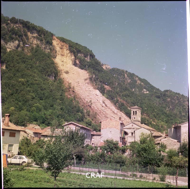 Veduta di Braulins e della frana causata dal terremoto.