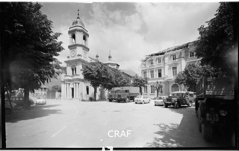 Immagine di piazza Roma (oggi piazza Marnico) danneggiata dal terremoto.