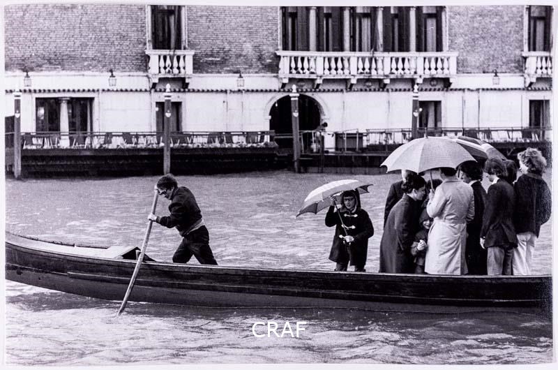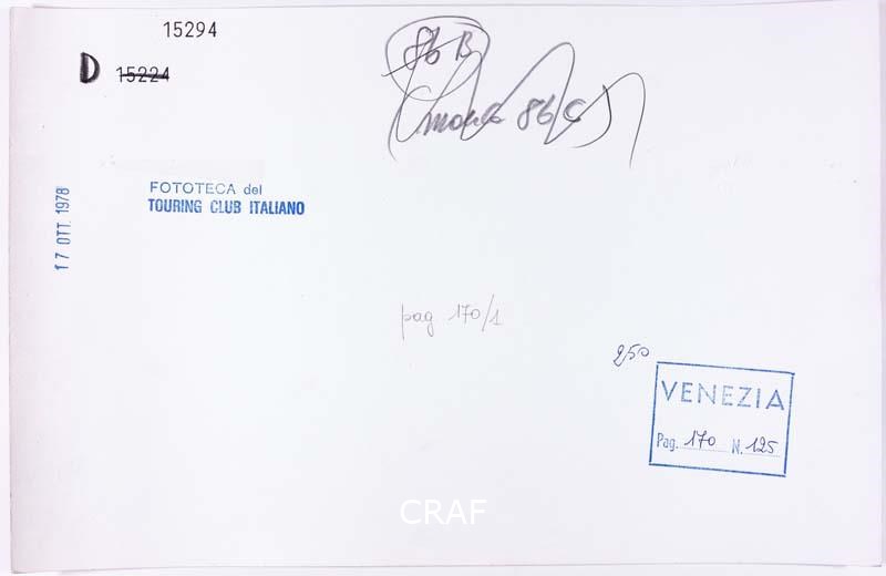 Traghetto sul Canal Grande a S. Maria del Giglio. Didascalia riportata sotto all'immagine pubblicata nel volume Venezia TCI del 1978 (immagine n. 125, pag. 170).