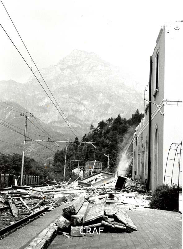 Danni causati dal terremoto alla stazione ferroviaria di Moggio Udinese