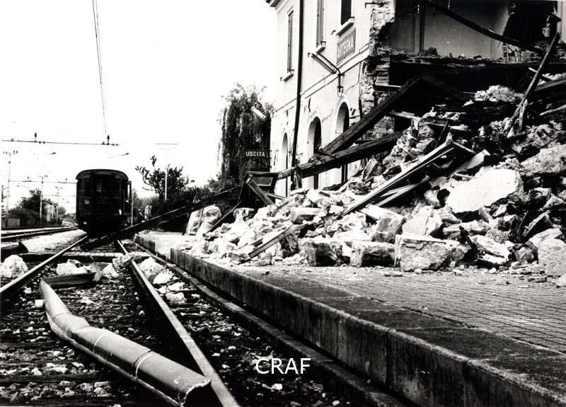 Danni causati dal terremoto alla stazione ferroviaria di Venzone