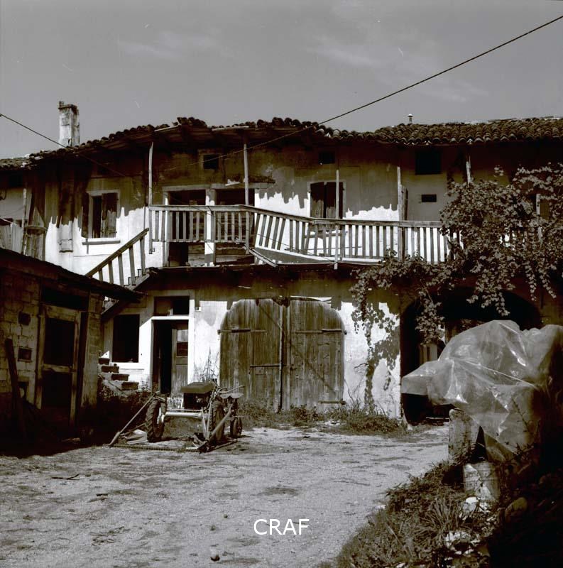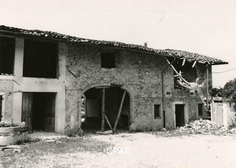 Danni causati dal terremoto alla ringhiera di un'edificio rurale